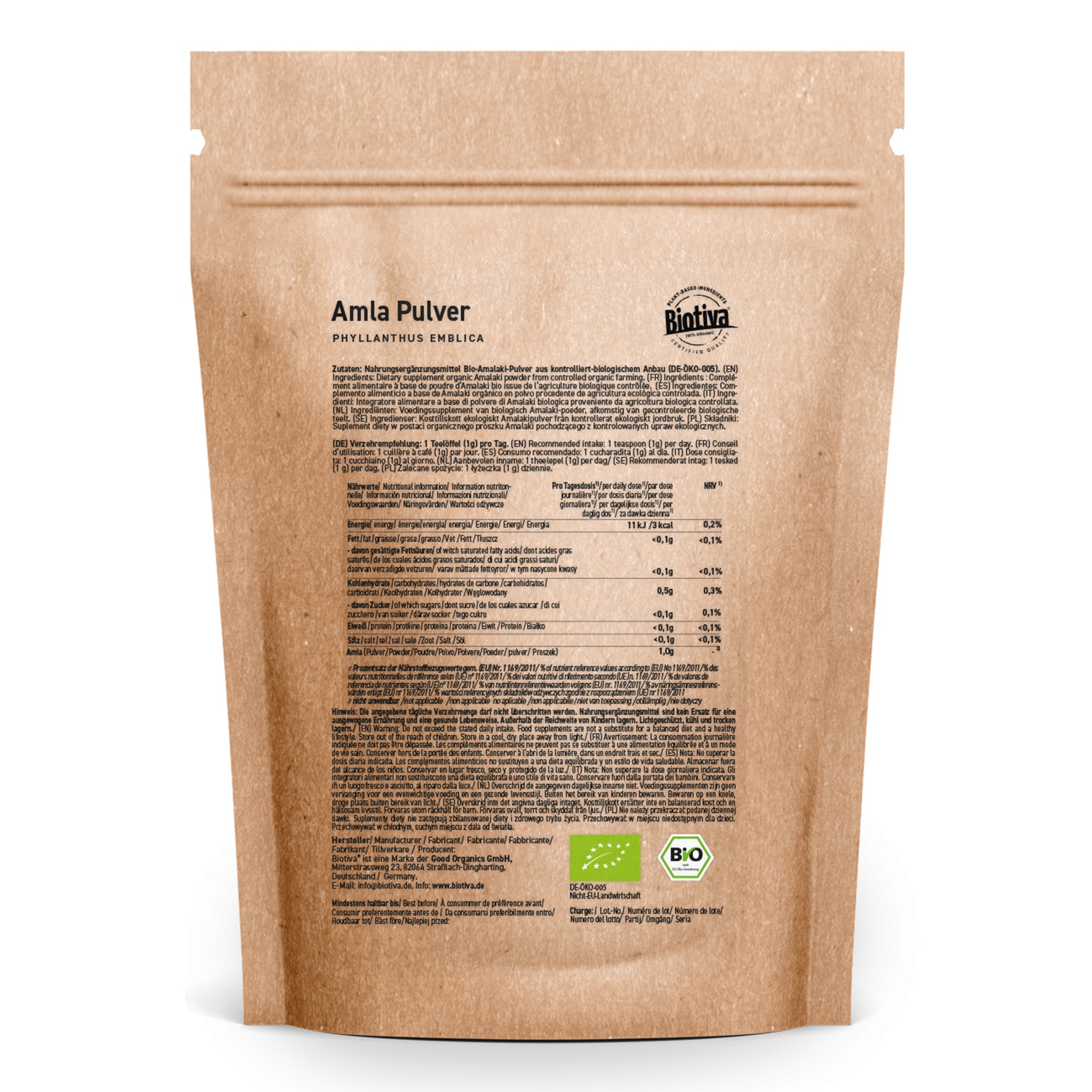 Amla-Pulver aus kontrolliert- biologischem Anbau. Zur Sicherstellung der hervorragenden Qualität wird der Rohstoff in unserer Manufaktur in Deutschland kontrolliert und abgefüllt. Frei von jeglichen Zusatzstoffen. Geeignet für Veganer und Vegetarier.