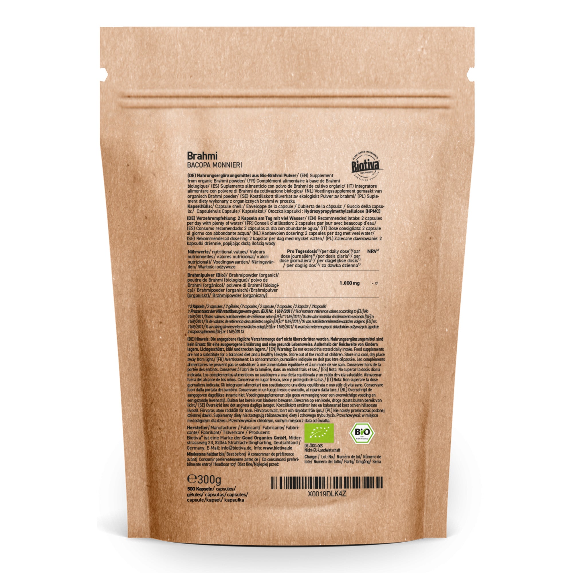 Unser Brahmi-Pulver stammt aus kontrolliert-biologischem Anbau. Das Pulver wird in vegane HPMC Kapseln gefüllt.
