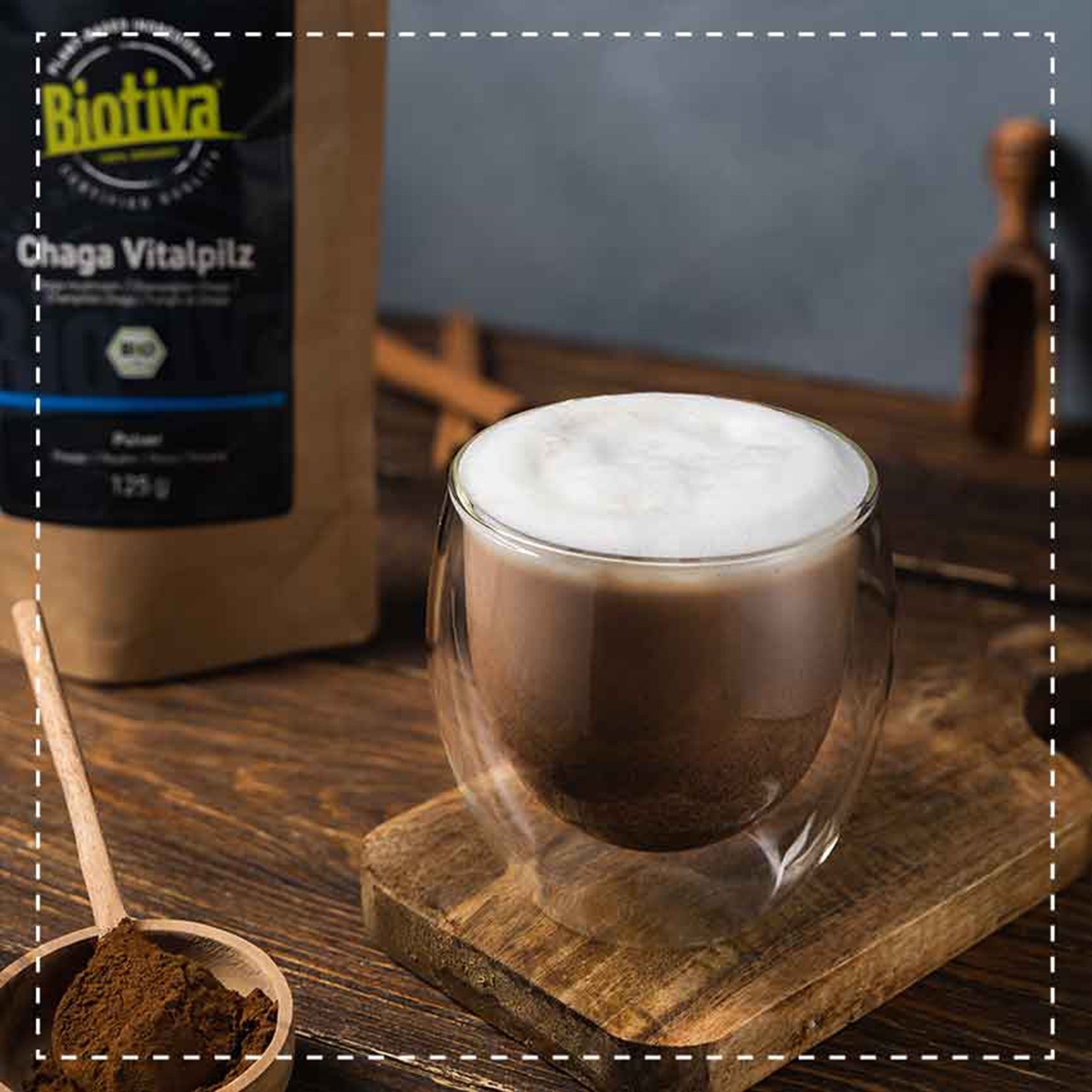 Chaga-Pulver aus biologischem Anbau. Zur Sicherstellung der hervorragenden Qualität wird der Rohstoff in unserer Manufaktur in Deutschland kontrolliert und abgefüllt. Frei von jeglichen Zusatzstoffen. Geeignet für Veganer und Vegetarier.