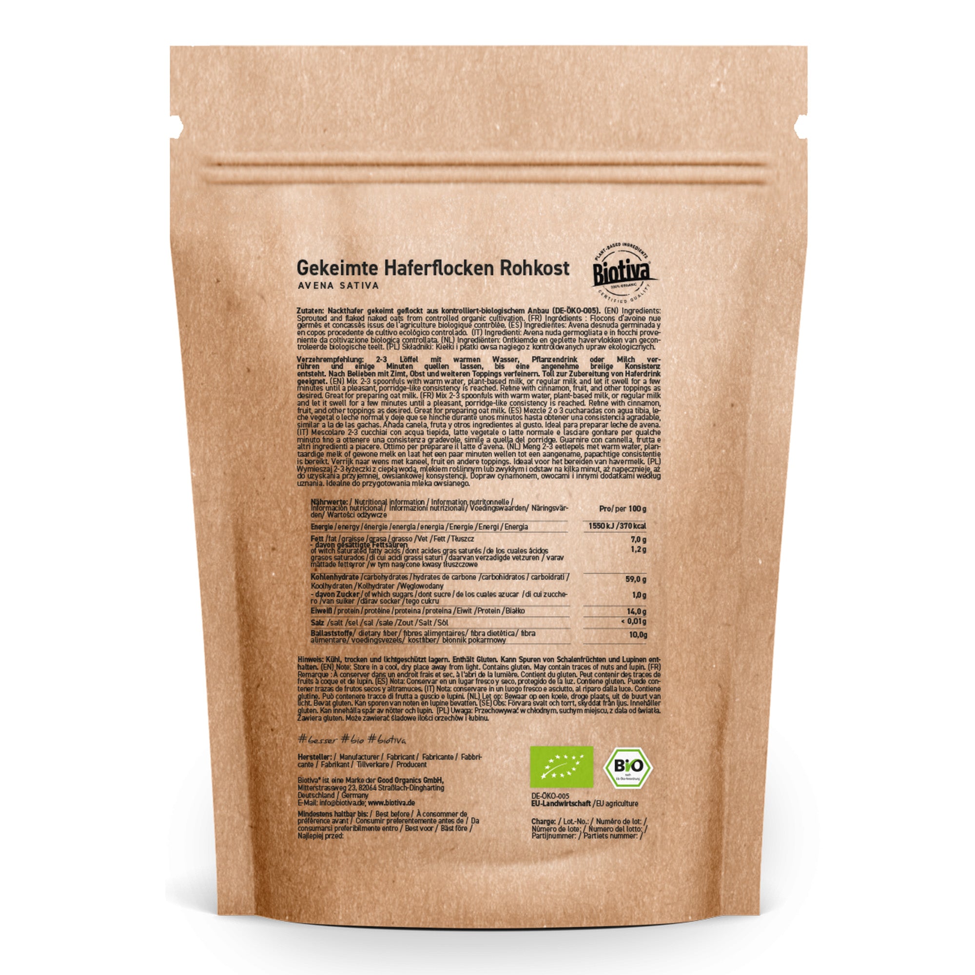 Gekeimte Haferflocken Rohkost Bio 600g – Aus gekeimtem Nackthafer, schonend geflockt