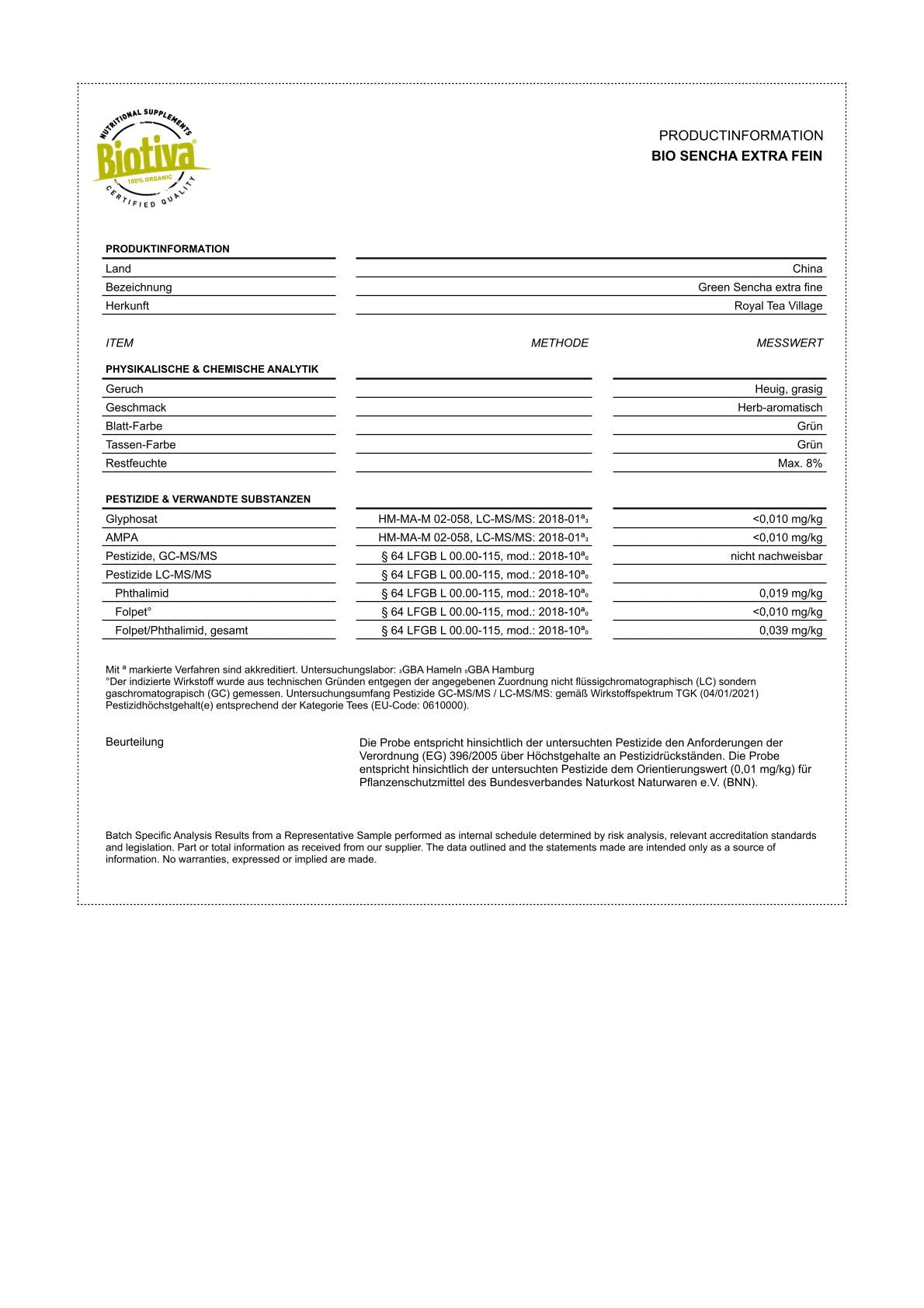 100% Sencha Grüntee aus kontrolliert-biologischem Anbau (DE-ÖKO-005)